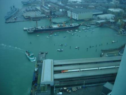 Jez Mills & I set off along with Kotka (Richard with Maclolm & Mavis) and later Rousillon (John Burton & APB) Great big southerly all the way there – great fun. Asked QHM for permission to cross Portsmouth, and rolled into Gunwharf itself for the first time. Quite an experience!